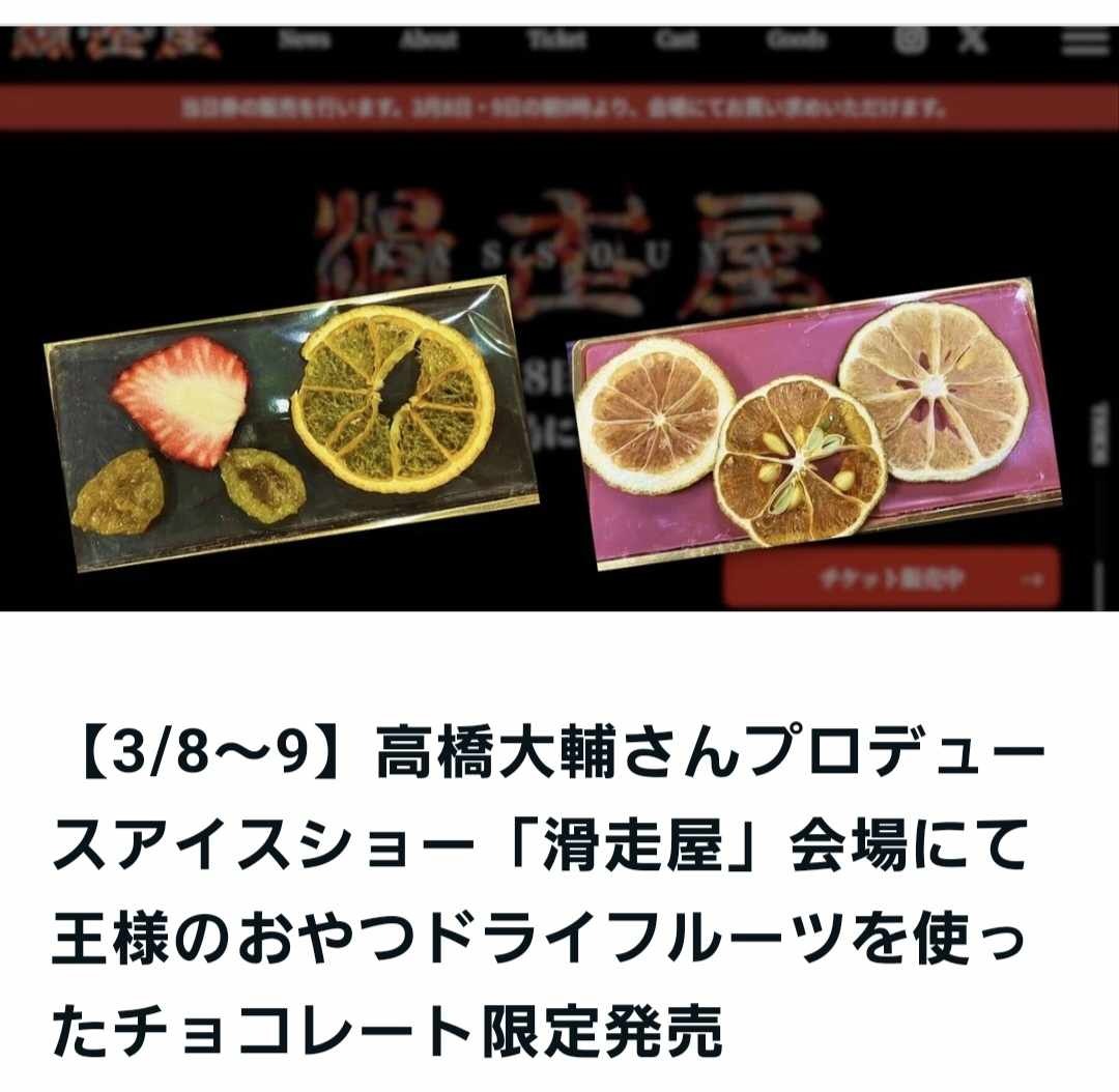 プロフィギュアスケーター高橋大輔さんプロデュースのアイスショー「滑走屋」(3/8~3/9 広島市 ひろしんビッグウェーブ)にて、王様のおやつを使ったチョコレートが会場限定で発売されました。
