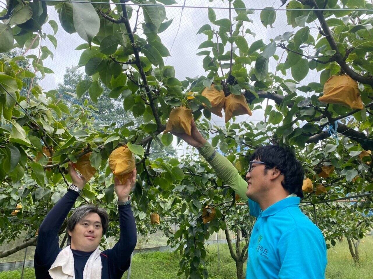 豊かな自然に恵まれた環境を生かし、農業を主体にした生産活動を行っている「望の丘ワークセンター」は、地域の方の指導を受けながら、りんごや梨、各種野菜の栽培に取り組んでいる施設です。